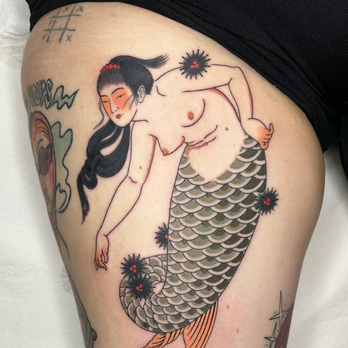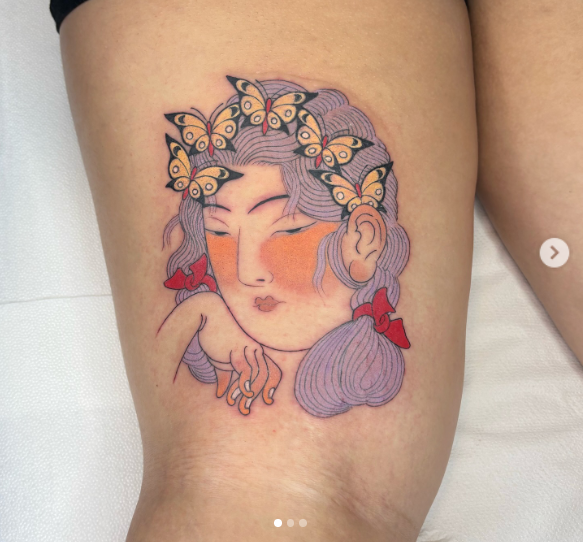 Su nombre real es Sonia y es una artista del tatuaje con un estilo distintivo que combina influencias orientales y surrealistas.